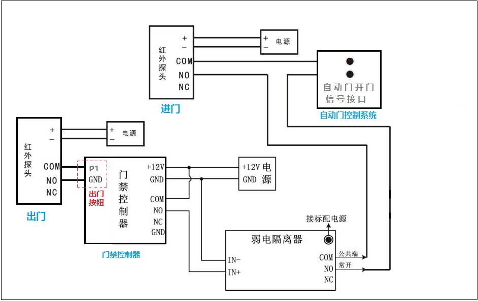 所以正確的實(shí)現(xiàn)門禁控制器控制自動(dòng)門的接線方式是這樣的: