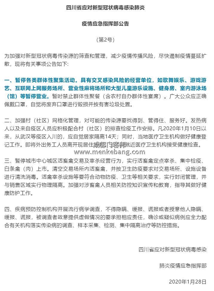 為切實加強新型冠狀病毒感染的肺炎疫情防控工作,更好保障人民群眾生命安全和身體健康,按照黨中央、國務院及省委、省政府防控工作部署,根據相關法律法規和制度規定,經省政府研究同意,現就延遲企業復工和學校開學等事項通知如下: