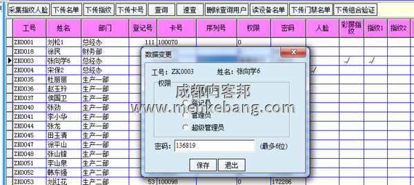 普通用戶;2.登記員(通常用于各分支,分店,店長負責本身人員指紋或人臉登記);3.管理員(除登記員外,還可以操作其它相關設置);4.超級管理員就可以進行恢復出廠設置等更深入的設置了.
